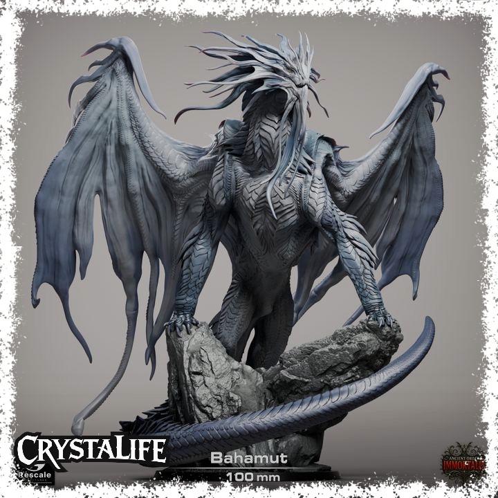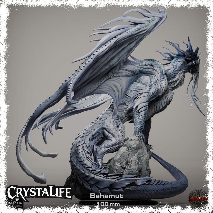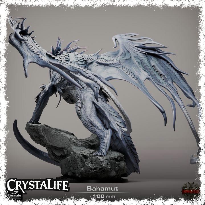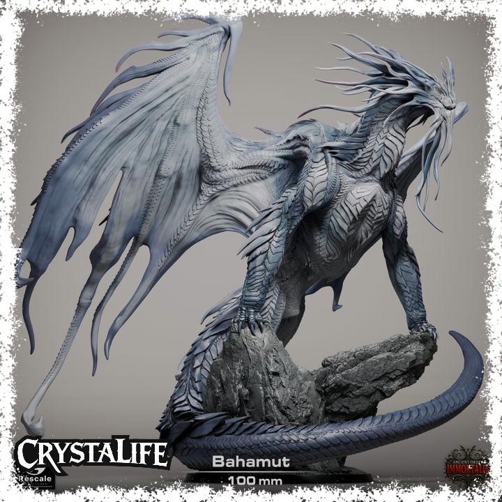 Bahamut Dragon Display Mini | Resin 3D Printed Platinum Dragon Miniature | DnD / TTRPG Legendary Dragon | Painting Piece (Rescale)