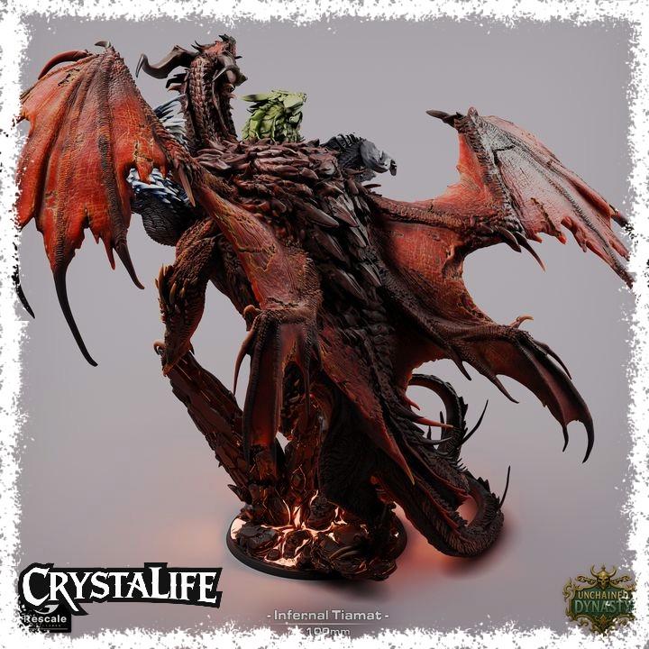 A massive five-headed Infernal Dragon inspired by Tiamat—built to be the ultimate centerpiece and a true “end of the campaign” moment. Each head brings its own personality and threat, making this an incredible display project for painters (perfect for bold colour transitions, glowing eyes, and scorched basing), and an unforgettable DnD miniatures / TTRPG final boss for hellish gates, cult rituals, and planar war arcs.